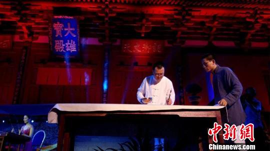 当日,来自美国、加拿大、英国、法国等中外佛学爱好者同诵《华严经》,佛教音乐传承人印能法师等佛教界、书法界、音乐界的百余名演员参演。 飞雪 摄